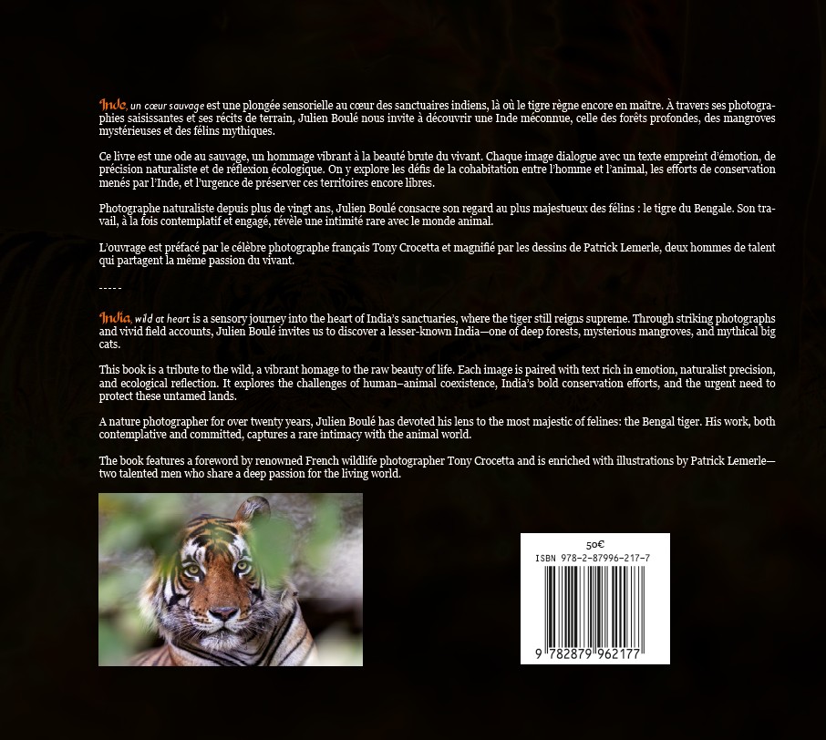 Mon livre sur l’Inde sauvage! Sorti en Novembre 2025, dédié à la photographie du tigres du Bengale et des grands animaux du sous-continent indien!